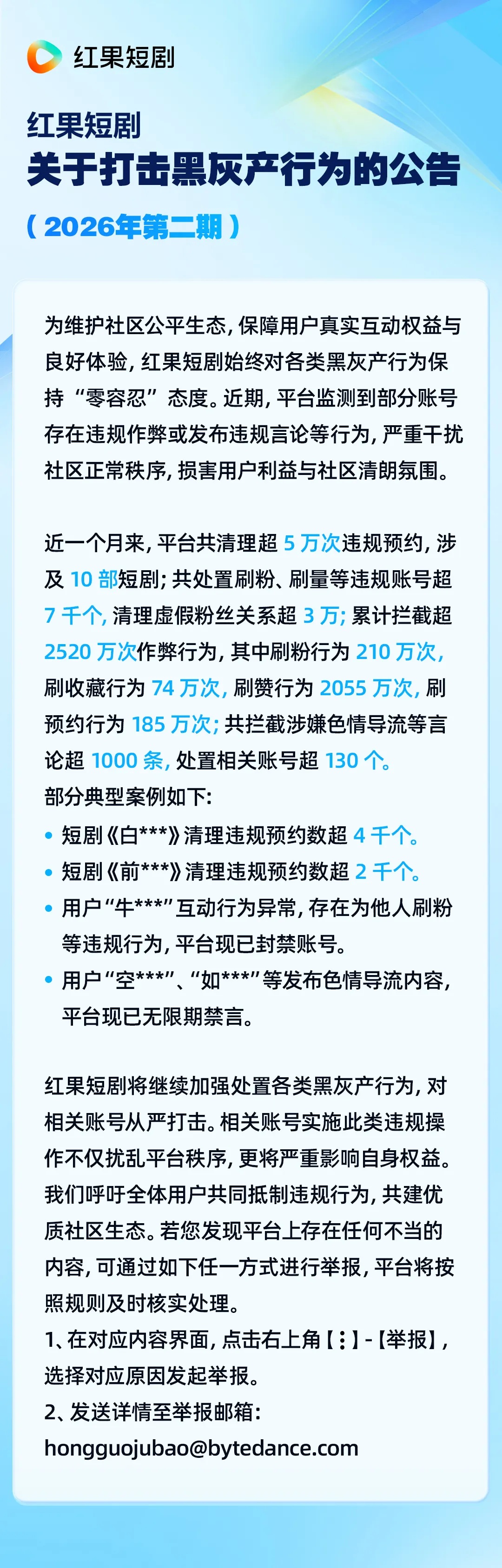 红果短剧关于打击黑灰产行为的公告(2026年第二期)