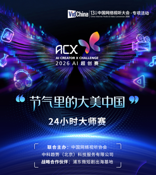 据介绍,2026AI超创赛(简称ACX)由中国网络视听协会与中科趋势科技服务有限公司联合主办,战略合作伙伴浦东微短剧出海基地(上海浦东开发(集团)有限公司)为创作者提供孵化、运营全周期服务。“24小时大师赛”是ACX年度特设活动,以同题、短时、高水平、高流量为特征,集中且直观展示AI创作者风采、AI工具价值,是第十三届中国网络视听大会的特设专项活动。本届赛事联动大会的“AI超创赛路演暨创投会”“AI超创之夜”“AI创作者经济论坛”旨在探索AI创作者生态图景,打造视听行业AI辅助生产标杆案例,持续为网络视听产业注入科技与人文交织的无限可能。